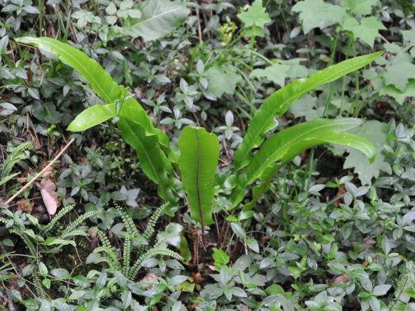 trváca papraď s vystúpavým až skoro priamym podzemkom; prezimujúce celistvookrajové listy dlhé 15-60 cm a široké až 8 cm, stopka zelenkastá alebo hnedá, kratšia ako tretina čepele, listy vzpriamené alebo previsnuté, kožovité, podlhovasto elipsovité až kopijovité, na báze srdcovité; na rube listov sú čiarkovité kôpky výtrusníc hrdzavej farby; hnedožlté mikroskopické výtrusy;