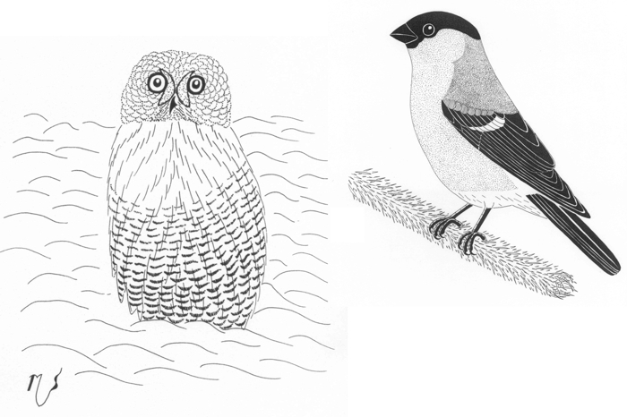 Sova Snežnica - sova snežná Hýľ Buclík - hýľ lesný