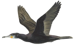 Vták veľkosti husi. Celkove je prevažne čierny s modrasto-fialovým leskom okrem bielych líc a spodnej časti hlavy. Farba očí je zelená. Sú to väčšie vtáky s malou hlavou a s dlhším zobákom. Nohy má mocné, nízke a 4 prsty má spojené plávacou blanou. Horná čeľusť je hákovito zahnutá, nozdry sú nevyvinuté. Krk a hlava vo svadobnom šate sú belavé. Mláďatá majú spočiatku tmavosivý páperový šat, po dosiahnutí letu schopnosti sú nenápadne hnedočierne. Juvenilné vtáky majú brucho svetlé, zobák žltý až zelený a nohy čierne.