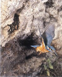 Hniezdi v nore dlhej až 1 m, ktorú si vyhrabáva v kolmých brehoch nad hladinou. Hniezdne lôžko je v komôrke na konci nory. Priemer otvoru býva 5 cm. Hniezdi 2 krát do roka, v apríli až v júli. Znáša po 5 - 7 bielych vajíčok veľkosti 21-25 x 17-20 mm. Inkubačný čas 21 dní. Na hniezde sedia rodičia striedavo.